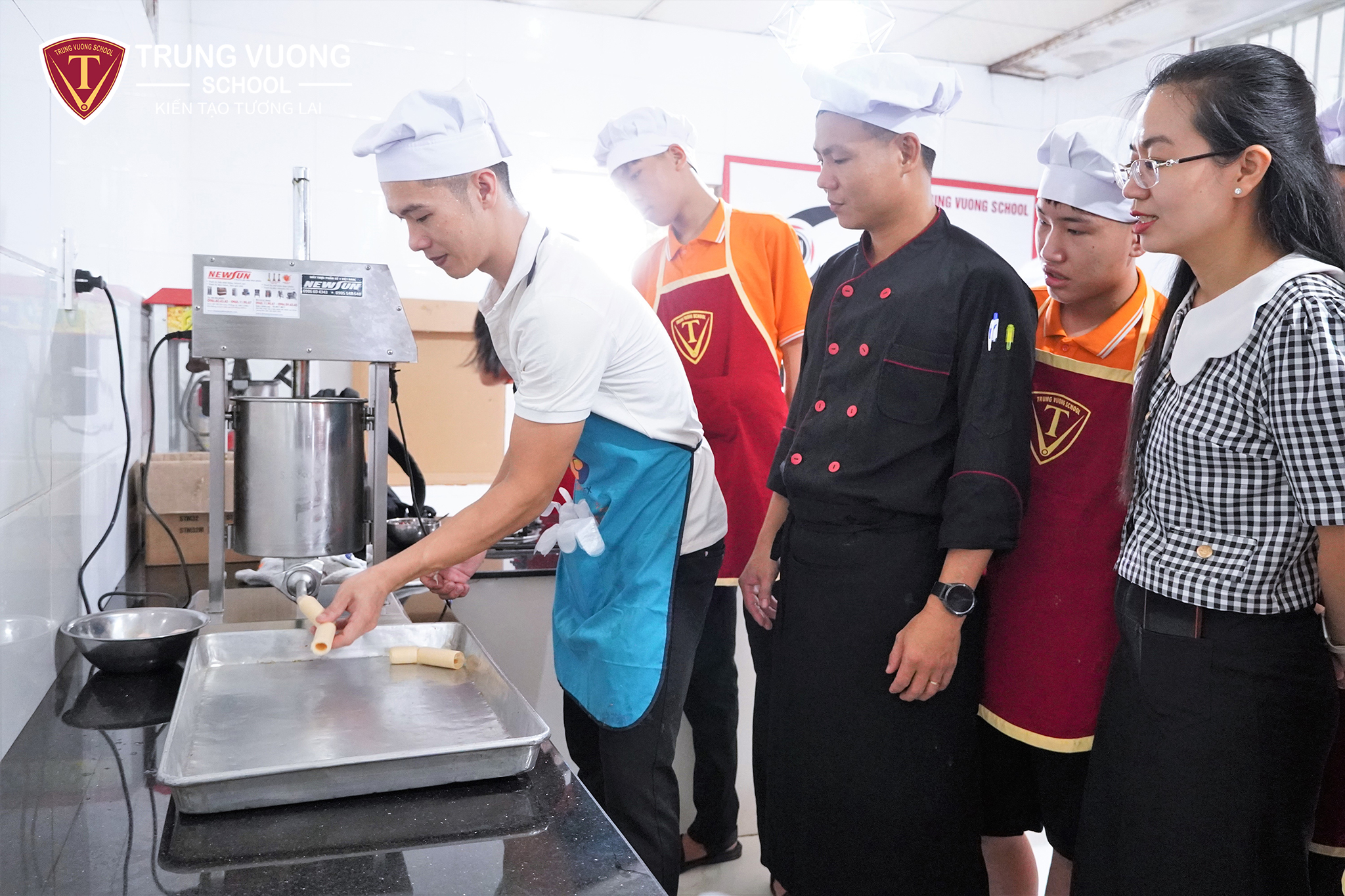 Vừa thay đổi không gian học tập, vừa được tìm hiểu quy trình chế biến và tự tay thực hành từng công đoạn cùng hai đầu bếp chuyên nghiệp Trưng Vương.