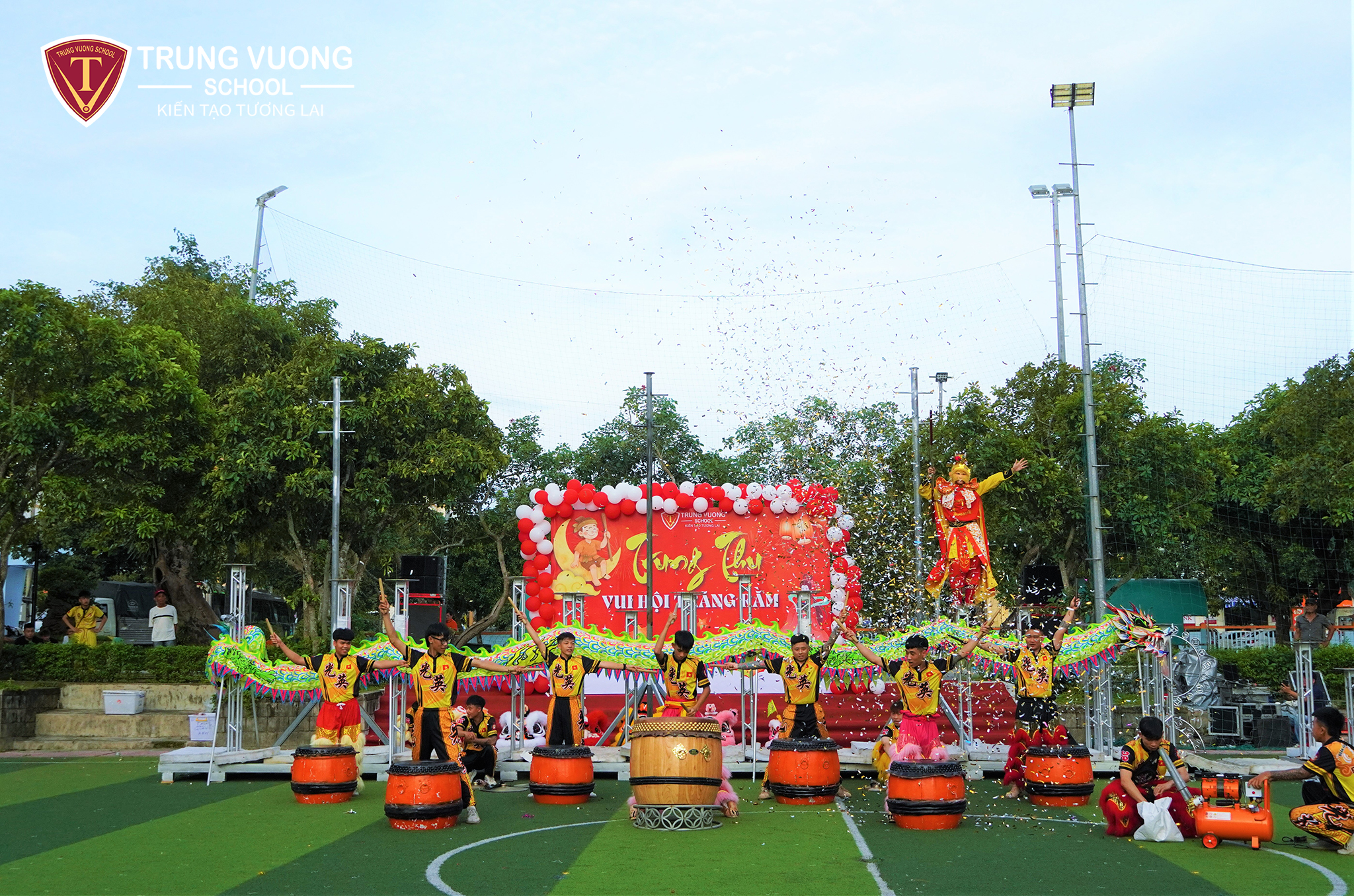 Không khí Trung Thu chiều qua 15/8ÂL tại Trường Trưng Vương thật rộn ràng và ấm áp. Các bạn học sinh háo hức cùng nhau rước đèn, phá cỗ, xem Múa Lân, vui đùa với chị Hằng – chú Cuội, để lại biết bao tiếng cười và niềm vui hồn nhiên.